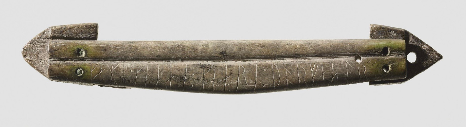 The preservation of the inscription owes much to the anaerobic, waterlogged conditions of the Vimose bog, where peat layers inhibited bacterial decay and protected organic materials like bone and wood from rapid deterioration. The comb did not end up in the bog by accident. Depositional practices at Vimose involved the intentional sinking of objects into the bog as votive offerings, a ritual act, with many items exhibiting deliberate breakage to render them unusable after they had been sunk in the bog. The comb, then, was not lost, discarded, or part of the funerary rites for a deceased person, but instead offered up in a ritual act that transformed a personal grooming object into something sacred.
