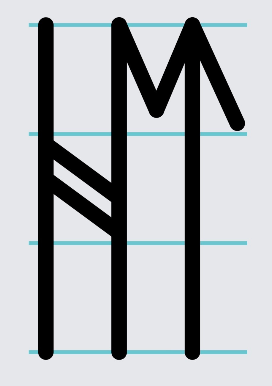 A bind rune is what you get when two or more runes are merged into a single combined symbol, sharing parts of each other rather than being written out one after another in a row. The easiest way to picture it is to think of each rune as being built around a vertical line, with additional strokes branching off it. If you want to write two runes next to each other in the normal way, you draw the first, then the second. But if you create a bind rune, you use one vertical line as the backbone of both at the same time, with the extra strokes of each rune going off in their different directions from the same central spine. The person reading it then has to look at the combined shape and work out which two runes have been merged together. There were good practical reasons for doing this. Some objects do not offer much space for writing, and merging runes together allowed the carver to fit more meaning into a small area. Perhaps this was the case for the Whitby comb. Indeed, there are several bind runes throughout the text. We see bind runes in many different runic inscriptions, so what makes it special is that there is a triple bind rune, that is, three runes combined together.
